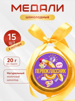 Шоколадные медали на ленте Первоклассник 20 г, 15 шт