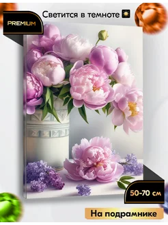 Алмазная мозаика с 5D и светящимися стразами Пионы 50х70