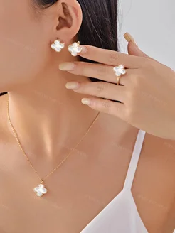набор клевер белый кольцо серьги браслет колье бижутерия
