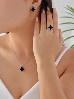 набор клевер чёрный кольцо серьги браслет колье бижутерия