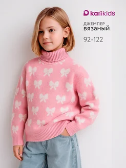 Свитер для девочки вязаный розовый с высоким горлом