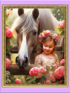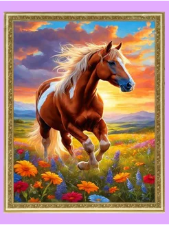 Алмазная мозаика 40х50 на подрамнике, Лошадка