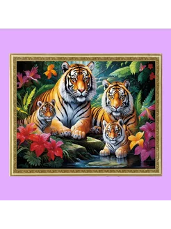 Алмазная мозаика 40х50 на подрамнике, Тигры