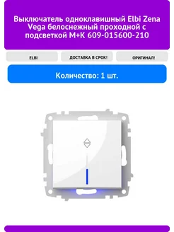 Выключатель одноклавишный Zena Vega белоснежный проход