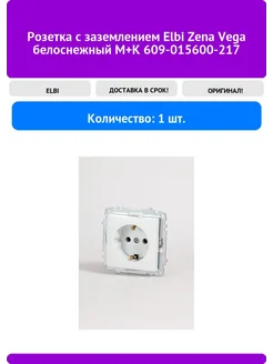 Розетка с заземлением Zena Vega белоснежный M+K 609-01