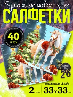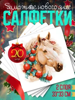 Бумажные салфетки новогодние с лошадью 2 уп*20 шт