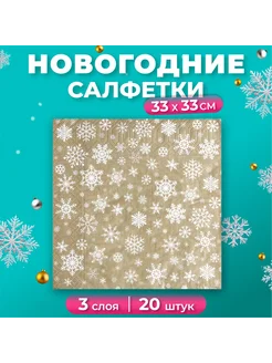Салфетки новогодние бумажные снежинки 33х33 см 20 шт