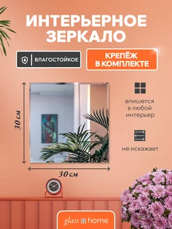 Интерьерное зеркало на стену с крепежом 30х30 см квадратное