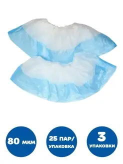 Бахилы КОМПЛЕКТ 50 штук (25 пар), ДВОЙНЫЕ (со стелькой)