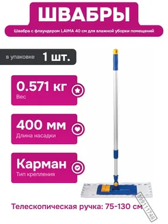 Плоская швабра для мытья пола и стен с карманным креплением
