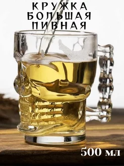 Кружка для пива Череп большая 500 мл стеклянная