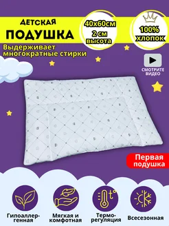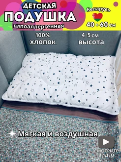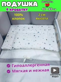 Подушка детская для новорожденных 40х60 хлопковая в кроватку