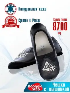 Чешки кожаные чёрные с вышивкой "кораблик"