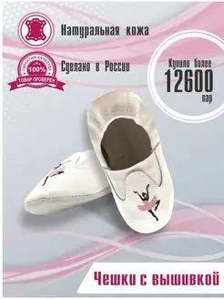 Чешки кожаные белые с вышивкой "балерина"