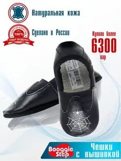 Чешки кожаные чёрные с вышивкой "паук"