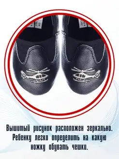 Чешки кожаные чёрные с вышивкой "вертолёт"