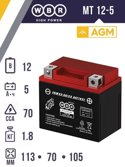 Аккумулятор WBR MT 12-5 (YTX5L-BS YTZ7S YT5L-BS)