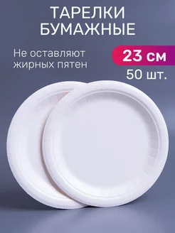 Тарелки одноразовые бумажные 23 см, 50 шт