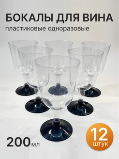 Бокалы для вина пластиковые одноразовые прозрачные 12 шт