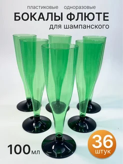 Бокалы для шампанского пластиковые зеленые Флюте 36 шт