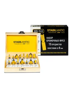Набор кромочных фрез по дереву 15 предметов, 8 мм хвостовик