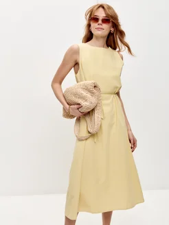 Платье осеннее офисное миди с подкладкой и драпировкой
