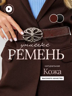 Широкий ремень натуральная кожа с тиснением и заклепками