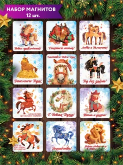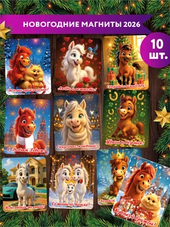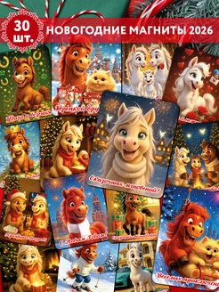 Магниты новогодние 2026 на холодильник Символ года Лошадь