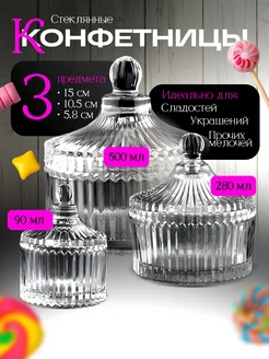 Набор Конфетниц с крышкой 3 штуки 90 280 500мл