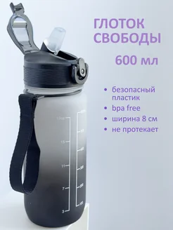 Бутылка для воды 600 мл с трубочкой спортивная
