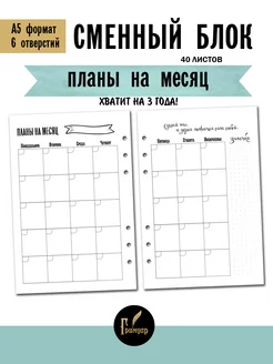 Сменный блок А5 для планера на 6 кольцах для учителя