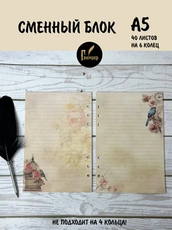 Сменный блок А5 на 6 колец в линейку с рисунком