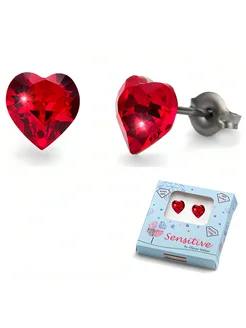 Серьги-пусеты Oliver Weber "Сердечки" (красные) S24008-227