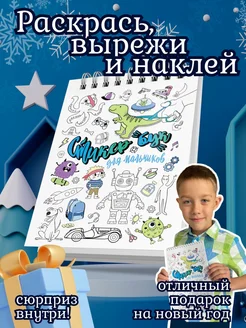 Стикербук раскраска новогодний