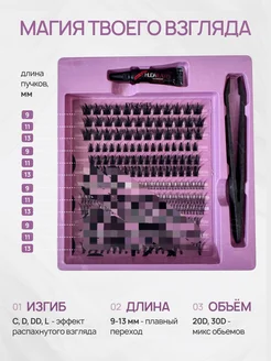 Пучки накладные для ресниц 268 шт с клеем и пинцетом изгиб D