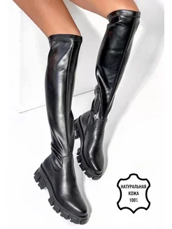 Сапоги-чулки демисезонные чёрные натуральная кожа