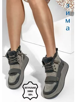Ботинки зима серые натуральная замша