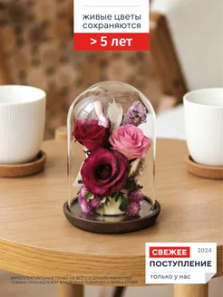 Настоящие цветы в герметичной вазе 9,2 см, стойкость 5 лет