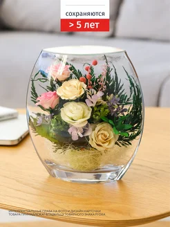Настоящие цветы в герметичной вазе 15,8 см, стойкость 5 лет