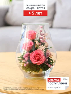 Настоящие цветы в герметичной вазе 21,2 см, стойкость 5 лет