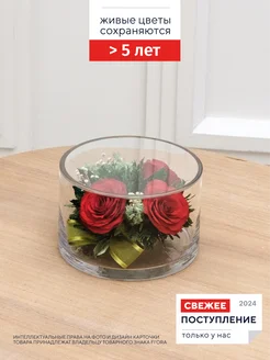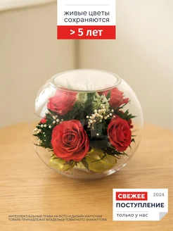 Настоящие цветы в герметичной вазе 14,3 см, стойкость 5 лет