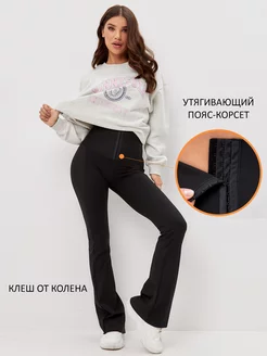 Лосины клеш от колeна утягивающие с поясом-корсетом леггинсы