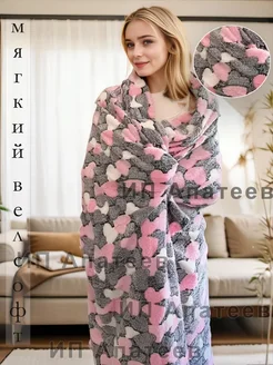 Плед 180х200 см на кровать и диван велсофт Сердечки