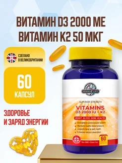 БАД к пище Витамины D3 2000 МЕ + К2, 60 шт