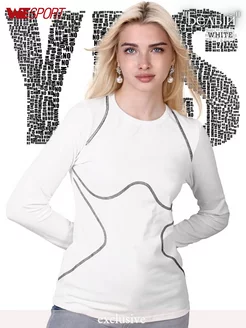 Футболка белая с длинным рукавом обтягивающая