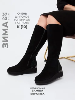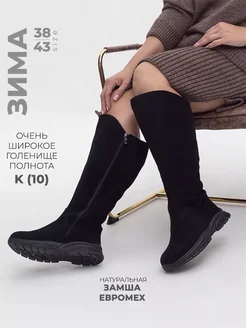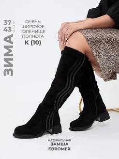Сапоги зимние замшевые на широкую голень и полную ногу