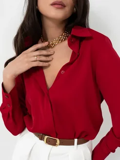 Рубашка шелковая атласная правильного красного цвета