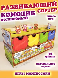 Сортер деревянный монтессори развивающая игрушка Комодик