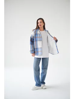 Рубашка в Клетку Куртка Теплая Удлиненная Оверсайз