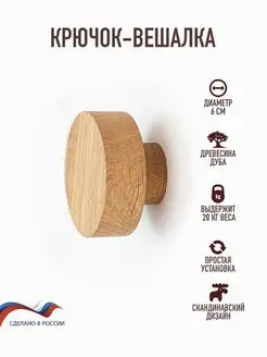 Крючок-вешалка из дерева, 6 см, дуб